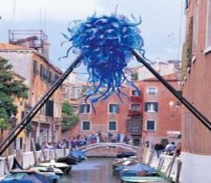 The art I selected is Dale Chihuly’s Rio delle Torreselle Chandelier, which is composed of hand-blown glass and was installed in Venice, Italy, in 1996. What drew my attention was the chandelier’s surprising installation over a Venetian canal and its wild, organic glass shapes that appear to float in defiance of gravity. It is interesting because it contradicts traditional notions of art and function and encourages viewers to experience everyday spaces in new ways.