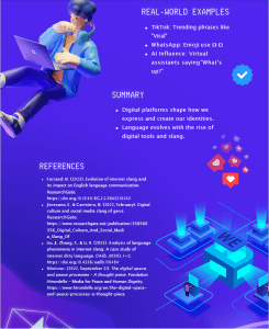 Farzand, M. (2023). Evolution of internet slang and its impact on English language communication. ResearchGate. https://doi.org/10.13140/RG.2.2.26432.10242 Jeresano, E., & Carretero, M. (2022, February). Digital culture and social media slang of gen z.