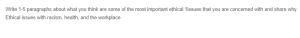 Write 1-5 paragraphs about what you think are some of the most important ethical 1issues that you are concerned with and share why.