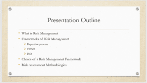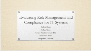 Hello and welcome to today’s presentation on evaluating risk management and compliance for IT systems. The presentation will expound on various ways of risk management for IT systems. It will also explain two risk assessment methodologies.