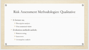 We shall begin by explaining what risk management is and why it is important for an organization’s IT infrastructure. Then we shall discuss the various frameworks of risk management. The frameworks have different steps; therefore, an organization can choose a framework that best suits it. Consequently, we shall discuss certain factors that influence the choice of a risk management framework. The next point would be to discuss the qualitative and quantitative risk assessment methodologies