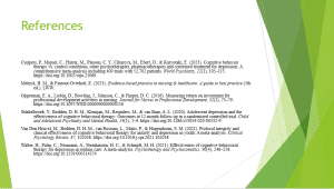 Van Den Heuvel, M., Bodden, D. H. M., van Rossum, L., Muris, P., & Hogendoorn, S. M. (2021). Protocol integrity and clinical effectiveness of cognitive behavioral therapy for anxiety and depression in youth: A meta-analysis. Clinical Psychology Review, 87, 102038. https://doi.org/10.1016/j.cpr.2021.102038