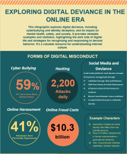 Cyber Deviance. Explore phenomena such as cyberbunying, omine narassment, hacking, online fraud, and other forms of digital misconduct. Provide data and statistics to support your analysis.