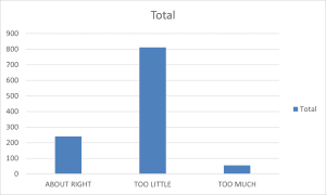 Notably, only a very small minority of 5% (n=55) believes “TOO MUCH” is being spent on healthcare. The stark imbalance in these responses, with nearly three-quarters of respondents favoring increased spending, points to a clear public mandate for healthcare funding enhancement. This distribution could reflect growing public awareness of healthcare system challenges, increasing healthcare costs, or broader concerns about healthcare accessibility and quality in the current system.