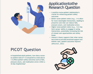 Your PICOT question included as text. —- PICOT Question is In hospital adult patients, how does a nurse- to- patient ration of 1:4 compared to a ration about 1:6 affect patient safety outcomes such as falls, pressure ulcers, and medication errors with in a 30 day hospital stay?