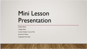 Create a visual presentation explaining the mini lesson you created in part 1. You will also create an anchor chart/poster to be used for the lesson. You must voice over Google Slides, PowerPoint, or create a full view video. Remember to follow the minutes required in part 1.