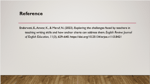 Endarwati, E., Anwar, K., & Maruf, N. (2023). Exploring the challenges faced by teachers in teaching writing skills and how anchor charts can address them. English Review: Journal of English Education, 11(3), 629–640. https://doi.org/10.25134/erjee.v11i3.8421