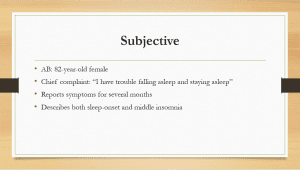 Hello. My name is Adele Jones. For today’s case presentation, I’ll discuss a sleep-wake disorder. The case involves an old woman who has chronic insomnia. Welcome.