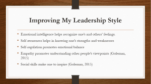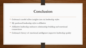 • Identify how to improve upon your style based on Goleman’s Theory of Emotional