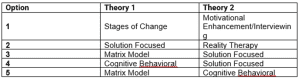Please title your paper listing the names of both theories such as, “Matrix Model vs. Solution Focused Therapy.