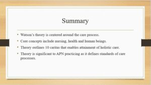 Explore the influence of Jean Watson’s Theory of Human Caring on your future role as an APN. The student will explore the concepts and Caritas processes from the Theory of Human Caring and present how these concepts may impact their future APN role.