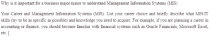 Your Career and Management Information Systems (MIS): List your career choice and briefly describe what MIS/IT skills (try to be as specific as possible) and knowledge you need to acquire. For example, if you are planning a career in accounting or finance, you should become familiar with financial systems such as Oracle Financials, Microsoft Excel, etc.